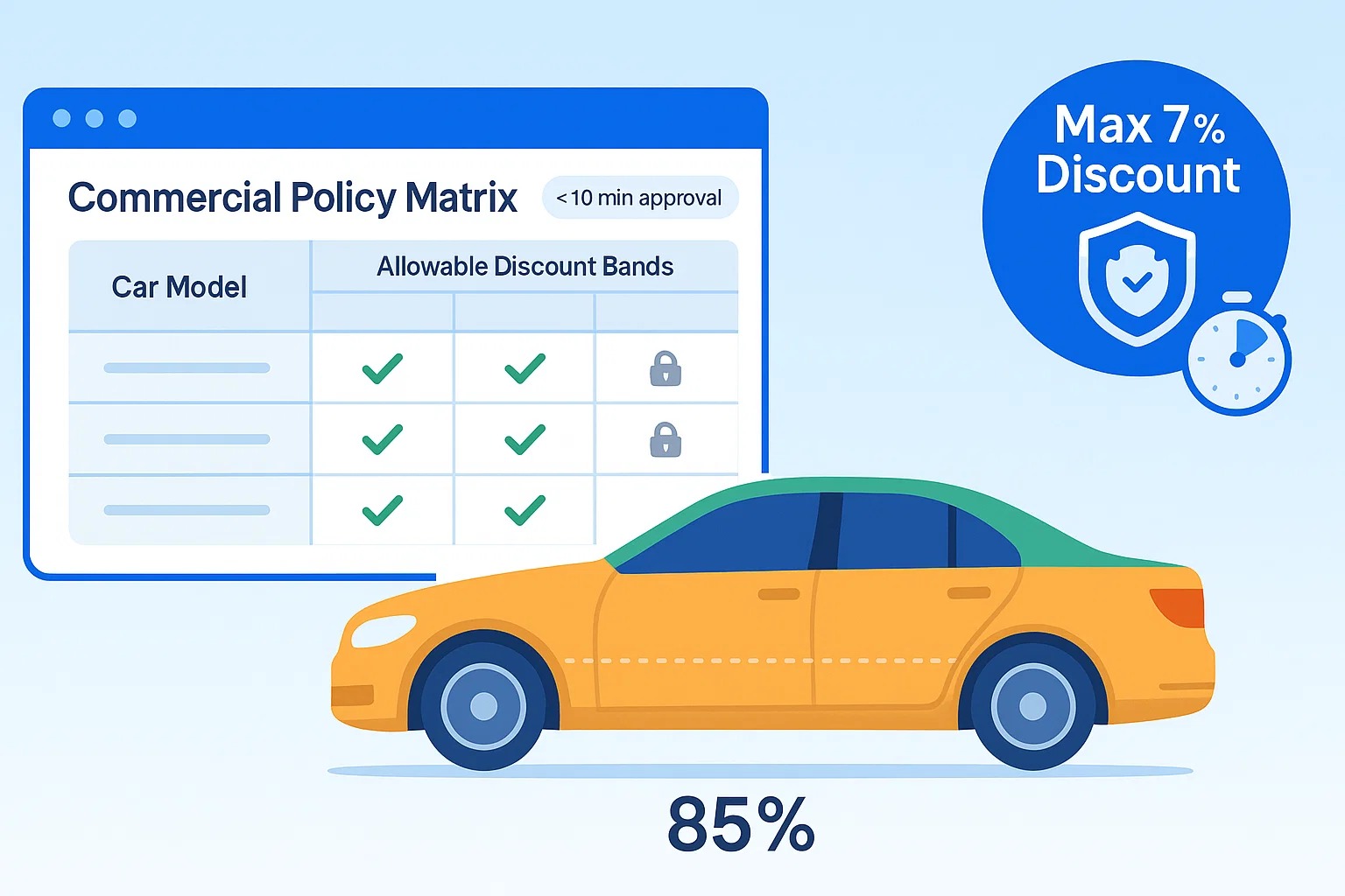 - Central commercial policies & approval levels—no over discounting.